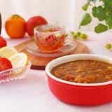 刺激的なスパイスの風味を感じられるカレーを楽しめますが、別添のフルーツソースを使用すると、また違った上品な甘みのある味わいに。好みで変化をつける楽しみもあるカレールーです。