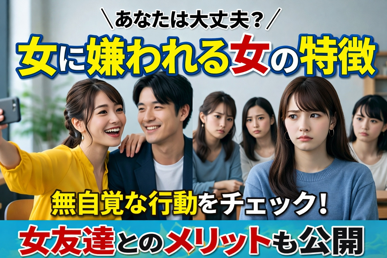 今回はそんな女性同士の付き合い方に悩む方に向けて、女に嫌われる女性の性格や特徴、女友達と仲良くするメリットを詳しく解説します。