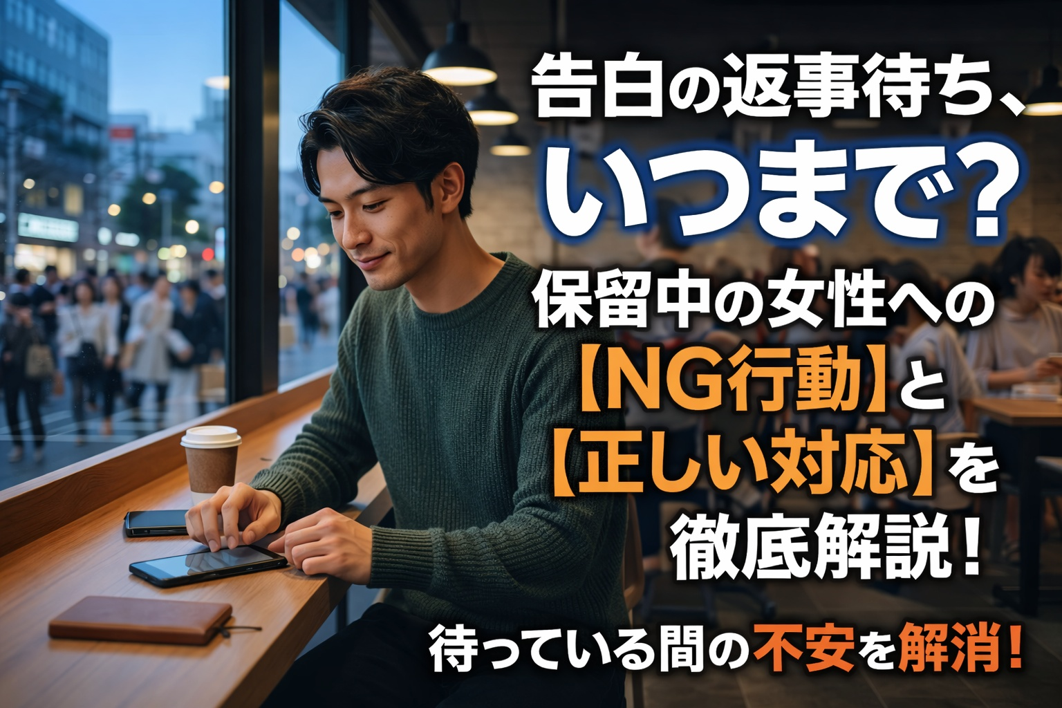 今回はそんな告白後の不安を抱える方に向けて、告白の返事待ちはいつまでなのか、保留中の女性に対して気を付けるべきNGラインを詳しく解説します。
