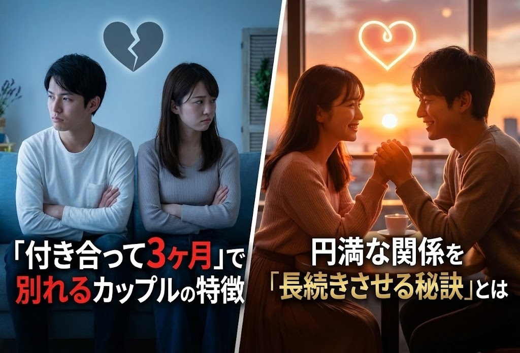 付き合って3ヶ月で別れるカップルが多い理由や別れるカップルの特徴、恋愛を長続きさせるコツについて解説してきました。