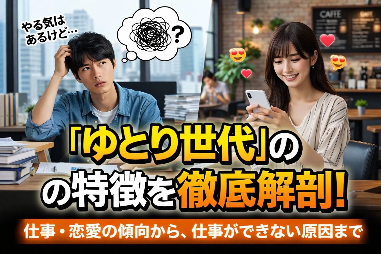 今回はそんなゆとり世代の本音が気になる方に向けて、ゆとり世代の仕事&恋愛の特徴や、やる気があっても仕事ができないと言われる原因を詳しく解説します。
