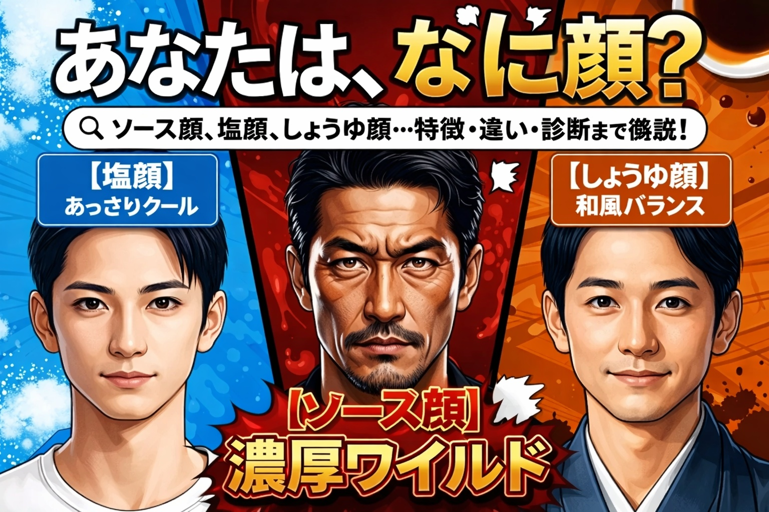 塩顔やしょうゆ顔と特徴から、ソース顔との違いを解説