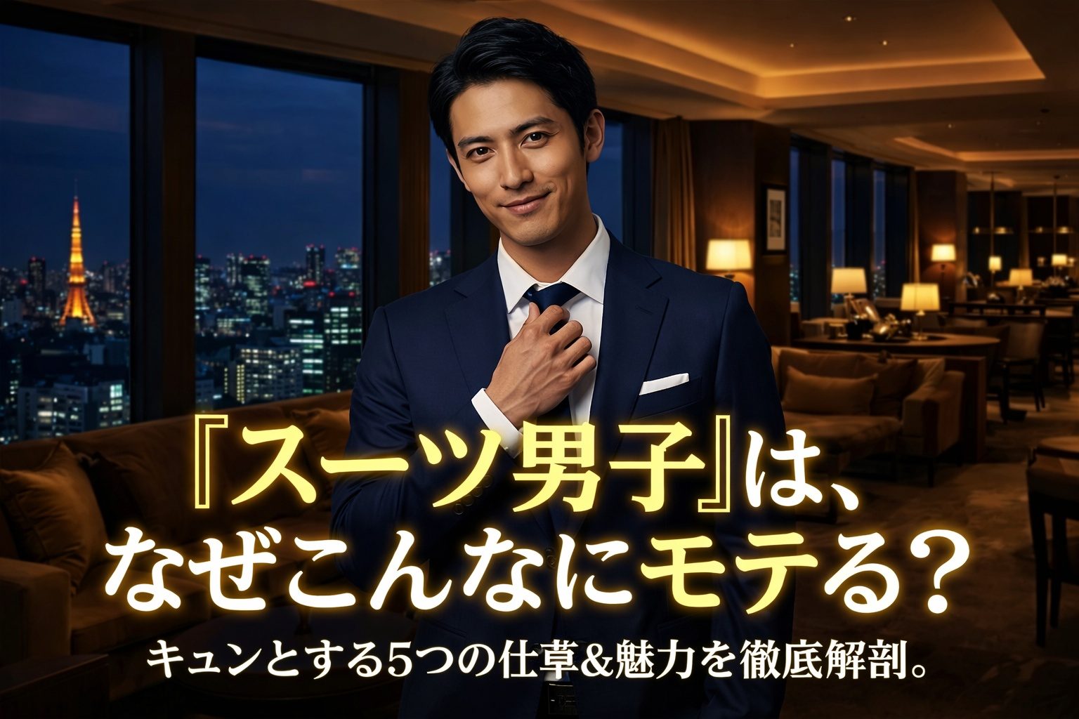 スーツ男子が女性にモテる理由や魅力、さらに、スーツ男子のかっこいい仕草やNGなスーツ姿、スーツの着こなしをアップさせる魅力的なアイテムについて解説しました。