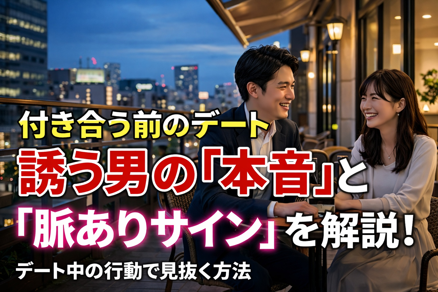 そこで本記事では、付き合う前のデートに誘う男性心理を分かりやすく整理しながら、デート中に分かる脈ありの見分け方も解説します。