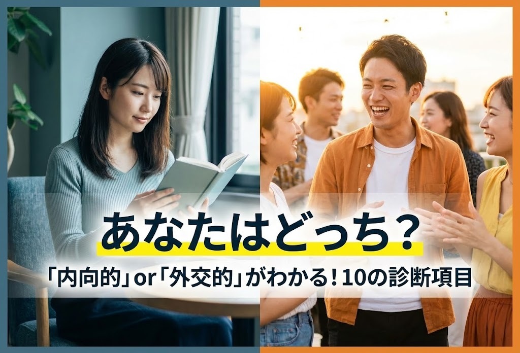 あなたの性格が内向的なのか外交的なのか、具体的なシチュエーションを交えて、どちらの性格なのか見極める診断リストを用意しました。