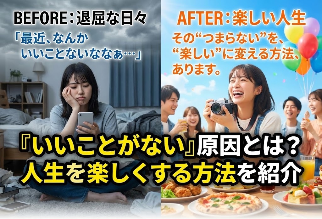 今回はそんな「いいことがない」と感じている人に向けて、いいことがない原因や、楽しいことを見つけて人生を楽しくする方法を詳しく解説します。