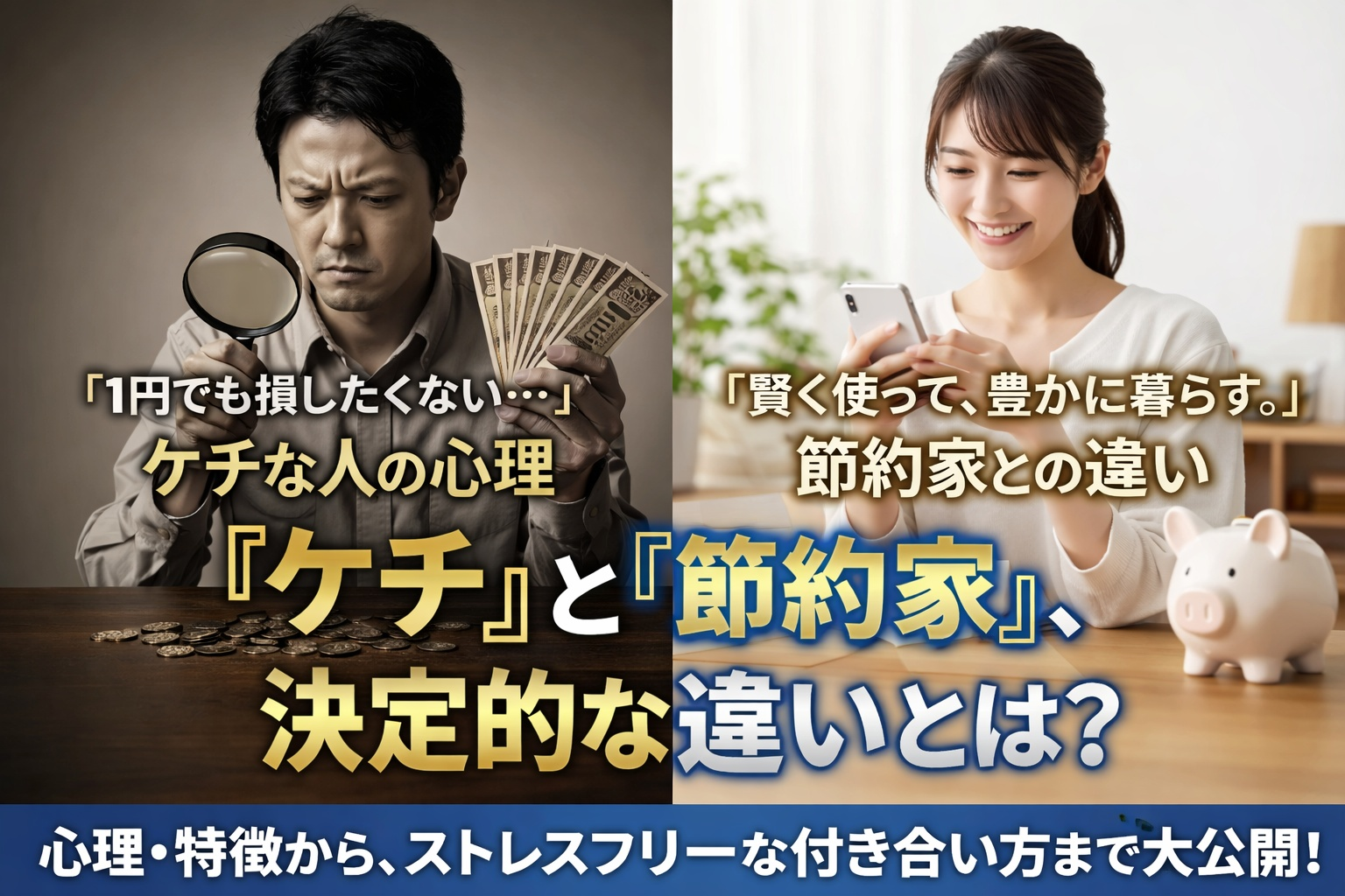 節約家もケチな人も、普段の生活で贅沢はしません。お金を貯めたいという気持ちは同じなのです。しかし、節約家の人は何のためにお金を貯めるのかが明確なのに対し、ケチな人はお金を貯めることだけを目的にしています。