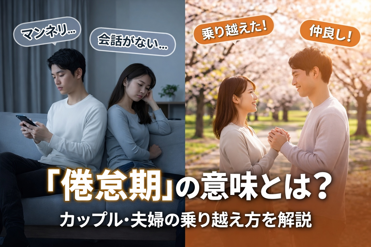 ここでは、倦怠期のカップルや夫婦にありがちな症状を、行動・感情・会話・LINE編にわけてお送りしていきます。