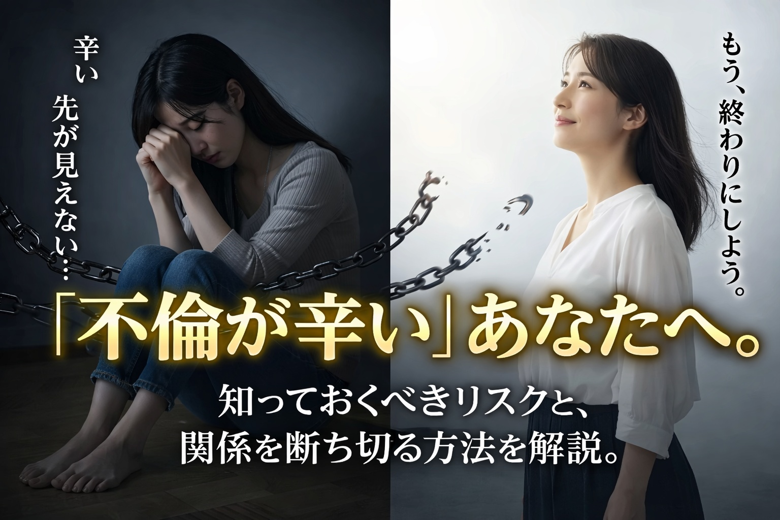 今回は、不倫が辛い原因や不倫をすることで負うリスク、そして不倫関係を断ち切る方法、不倫の痛手を乗り越える方法を徹底的に解説していきます。