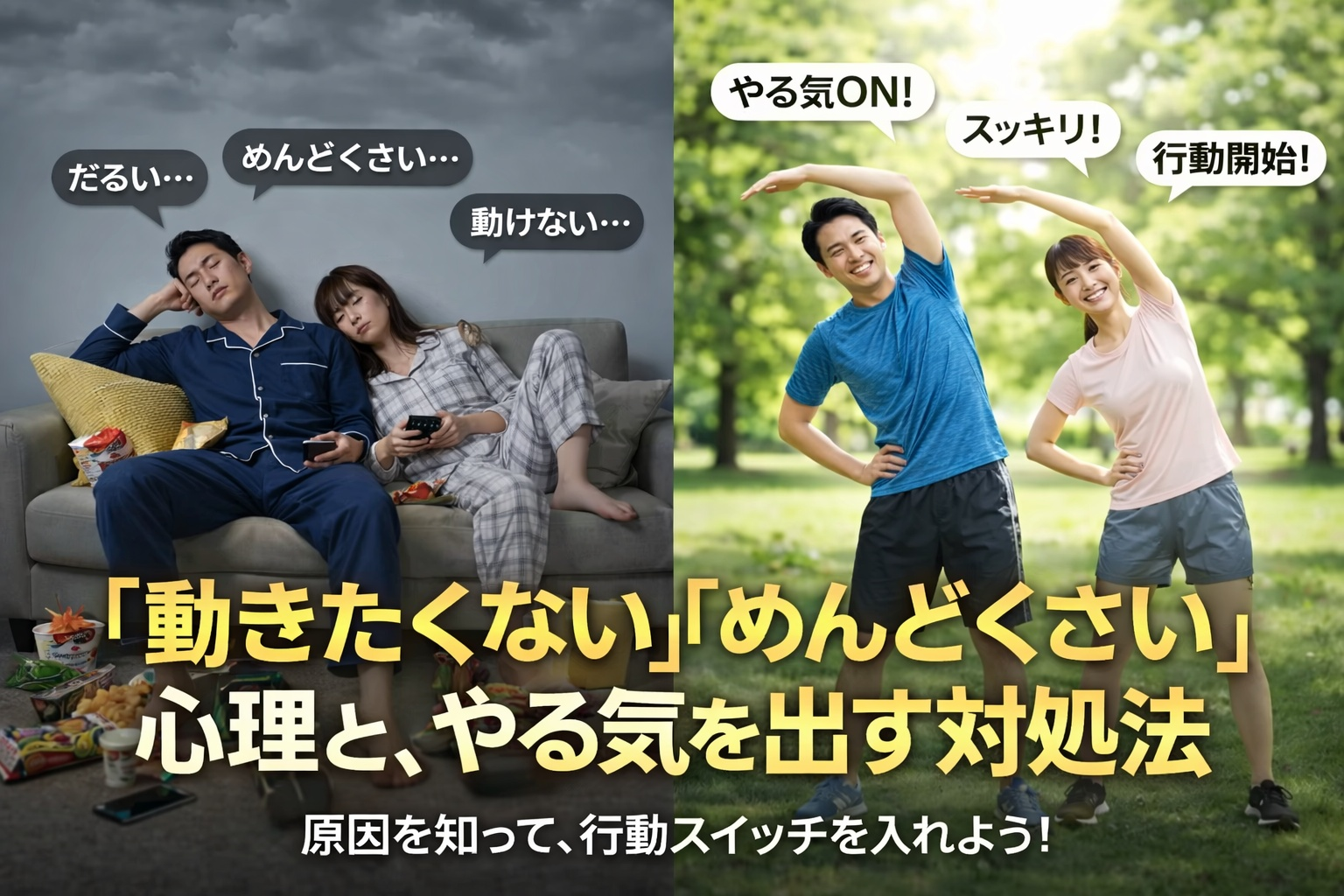 気持ちに体が付いてこないと次第に、何もしたくないという心理に変わってしまうことがあります。「よし、明日は頑張るぞ!」と意気込んでいたはずなのに、当日になっていざ動こうとすると、体がダルくて動けない、眠いなんてこともあるでしょう。