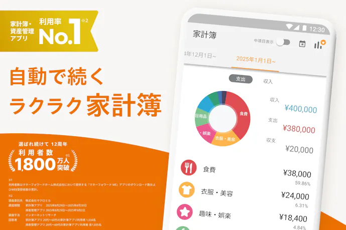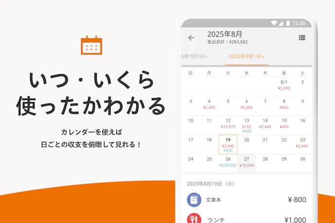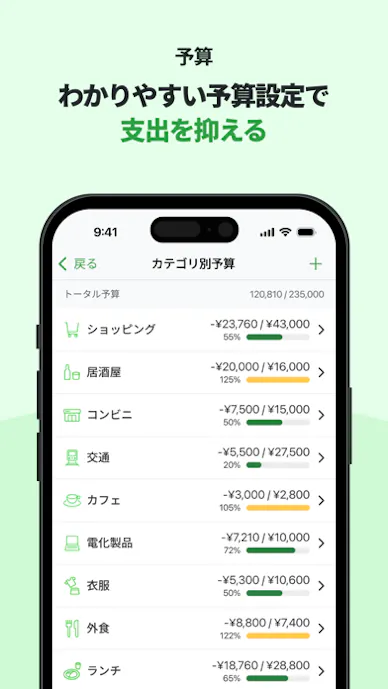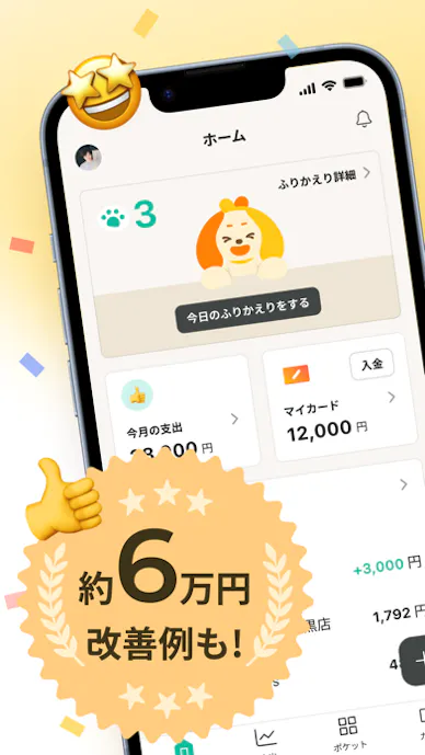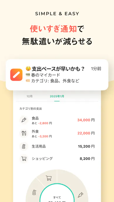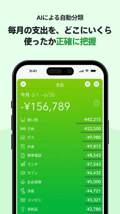 毎日の支出を食費・日用品などジャンル別に自動で分類してくれるので、何にお金を使っているのか把握しやすく家計の見直しにも役立つでしょう。
