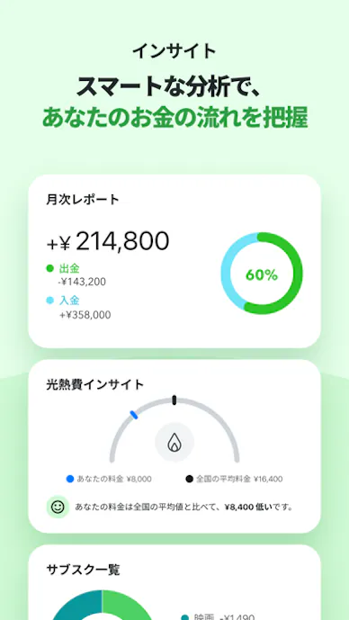 分析ツールもついているので、管理するだけでなく細目に家計を見直したい人にもおすすめです。