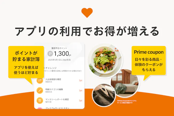 | ポイント | 銀行やクレジットカードとの連携だけならず、電子マネーやポイントやマイルの残高まで一気に確認できる | 世帯の支払いや入金情報を1つの共同口座で管理するため、生活の中でのお金のやり取りが一目で分かる | 紙のレシートを撮影するだけで自動入力できるので、入力がとても簡単 | B/43ペアカード」が用意されており、2人で残高を共有しながら使うことが可能 | 使ったお金を入力するだけなので操作はとても簡単 |