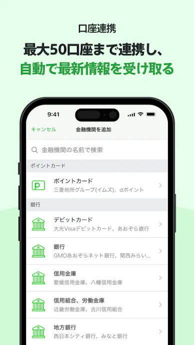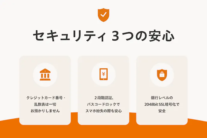 銀行口座やクレジットカードとの連携はしないので、セキュリティが心配な人でも安心。