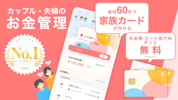 さらに、2人それぞれに家族カードが発行され、クレジットカードの利用が1つの口座からの引き落としとなり、毎月の支出の確認も簡単。
