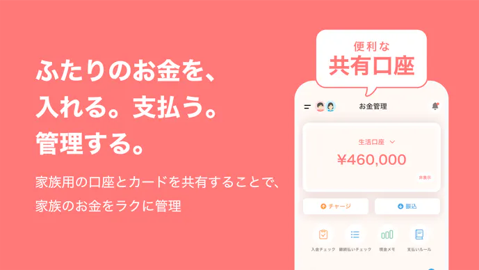 ファミリーバンクは、新婚夫婦に最適な共同口座アプリ。