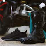足場の悪いオフロードを走行する際に必要なオフロードブーツ。スニーカーでもいいですが、雨や泥など環境によっては汚れがつくこともあります。