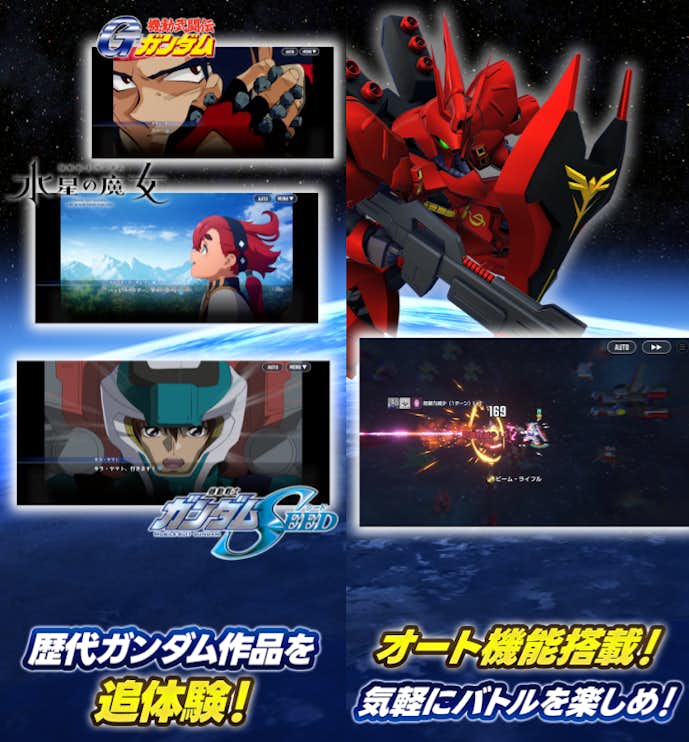 - 歴代のガンダムを集めた、ストーリーと機体を楽しめる
