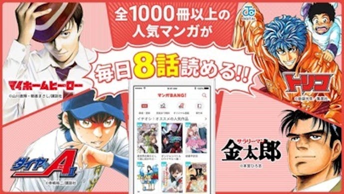 少年から青年向けまで幅広く揃い、アプリ内の“無料コーナー”から作品を選べば、毎日8話まで無料で読める仕組みです。
