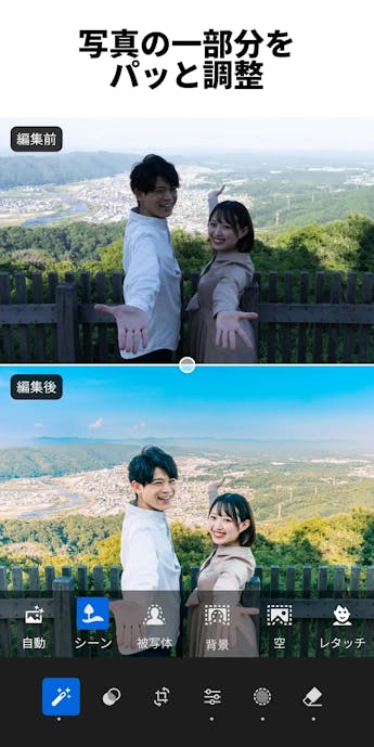選択するだけでプロ並みの仕上がりになる! プロ用ソフトが元になった画像編集アプリ |