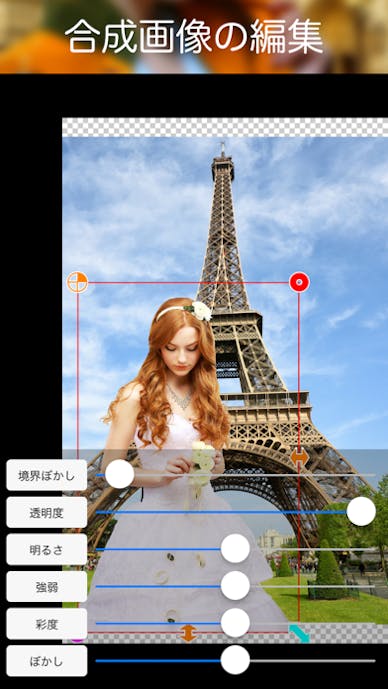 『PhotoLayers』なら、合成後の写真の境界をぼかしたり明るさを調節したりと編集でき、自然な仕上がりにできます。
