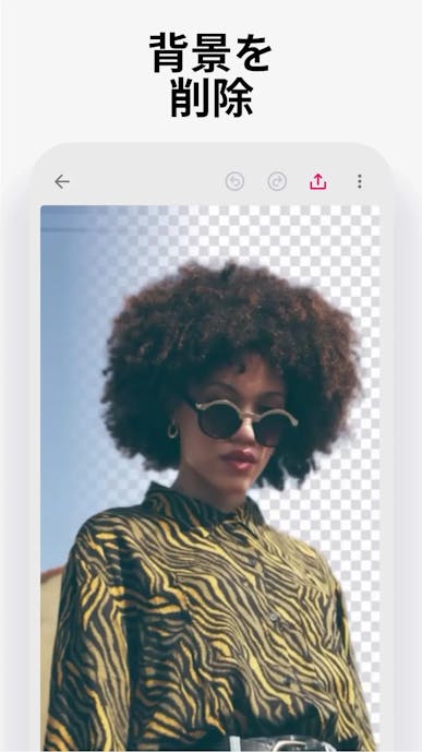 AI背景除去機能では、合成したい画像の背景をAIで自動で消すことが可能。書き出した画像を、他の画像と重ねたり、PNGやJPG形式に保存できたりと何でもできます。
