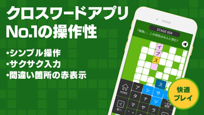 クロスワードを解く際には、答えが正しいと黒マス、誤っていると赤マスで瞬時にフィードバックされるため、快適にプレイ可能。