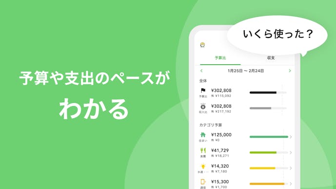 - 予算を設定することで、今月あといくら使えるのかも教えてくれる