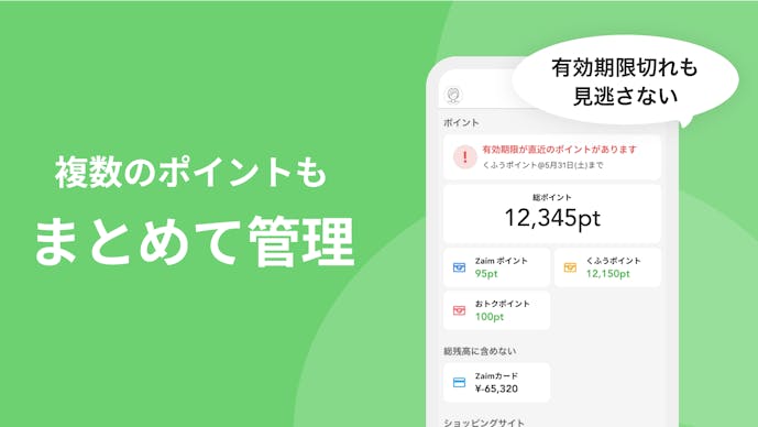 - 口座、クレジットカード、電子マネーやネットショッピングまでまとめて管理可能