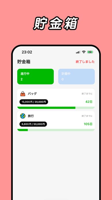 複数の帳簿を作成し、シナリオ別(生活費や旅行費、子ども資金など)に支出を管理可能。