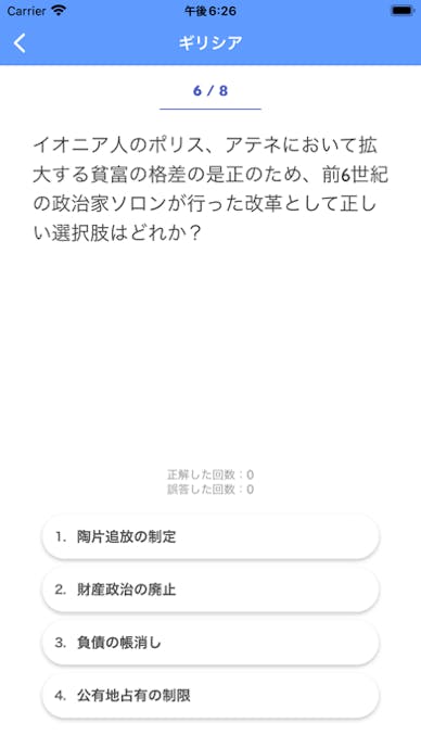 通学中の車内や、やる気が出ないときでも無理なく世界史の学習ができるスマホアプリです。