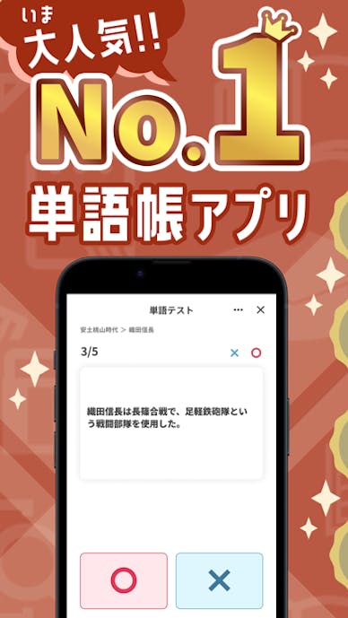スキマ時間で効率よく日本史を暗記したい高校生におすすめ。テスト直前の仕上げにも、毎日の学習習慣づけにも頼れる歴史学習アプリです。