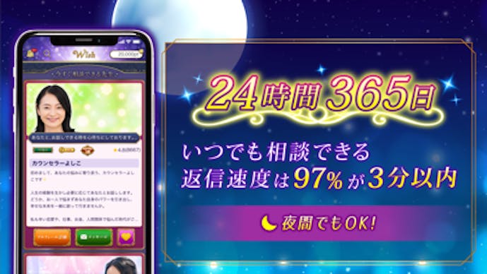 恋愛や人間関係、仕事の悩みを24時間365日いつでも相談できます。