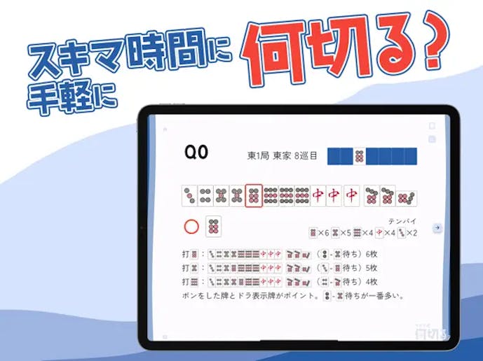 『麻雀ウザク式 何切る?』は、プロ監修の問題で牌効率を学べる無料学習アプリ。
