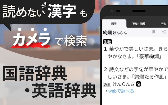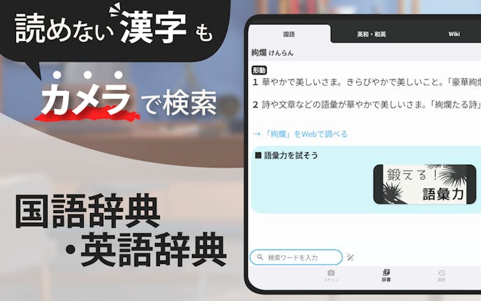 入力途中から意味や読みが一発表示される! 授業中や読書中でも素早く確認できる辞書アプリ |