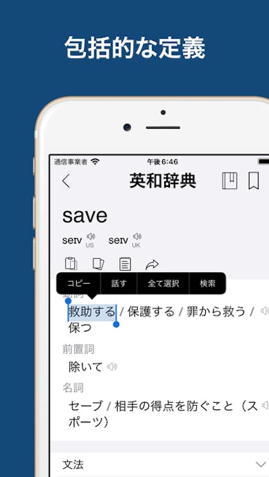 英語⇄日本語をワンタップで横断できる! 例文や解説も充実した便利な電子辞書アプリ |