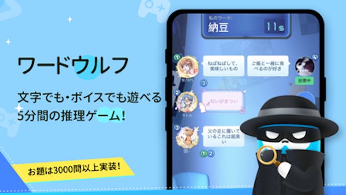 『ワードウルフ決定版』は、スマホ1台を回すだけで2~20人が遊べるお題当て心理戦ゲーム。