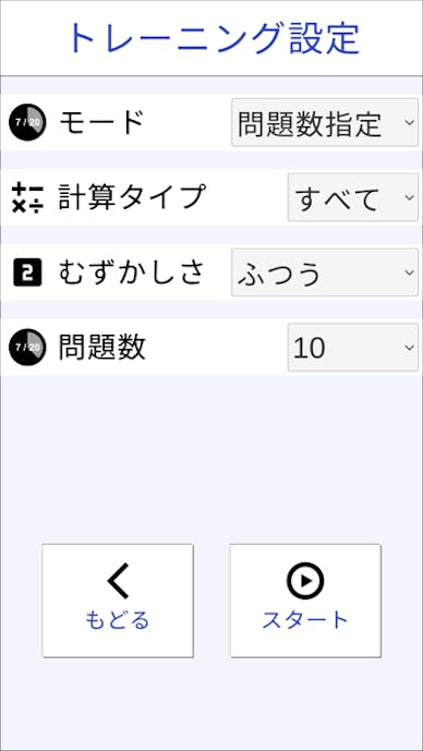 トレーニングは「時間制限」「問題数指定」「エンドレス」の3モードから選択可能。
