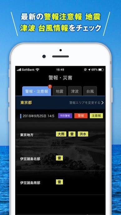 圏外の港や離島でも直前に取得した予報をオフラインで確認できる仕様。