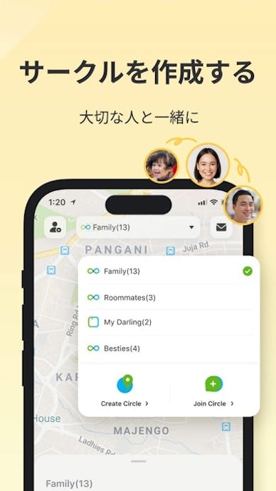 『Phone Tracker:Find my Family』は、6桁コードで作る「サークル」内だけに位置を共有できる見守りアプリです。