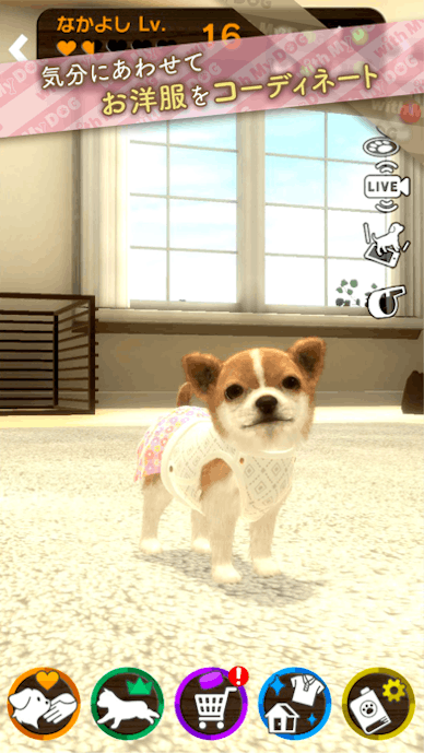 『with My DOG』は、スマホの中で本物そっくりの子犬と暮らせるリアル系バーチャルペットアプリです。