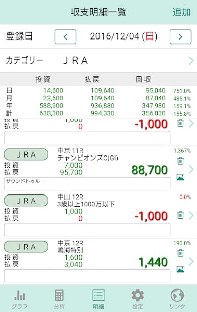 iPhoneユーザーはこちら Androidユーザーはこちら6. 博打や賭け事の家計簿:投資と回収をワンタップで記録できて手軽!すぐに損益がわかる収支管理アプリ
