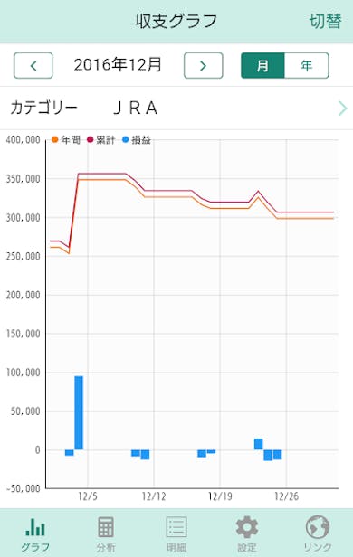 グラフの切り替えで月ごとの収支がすぐ見えるのが凄い!