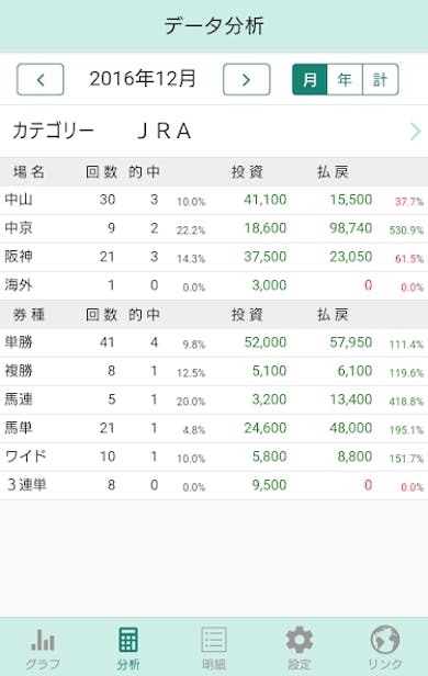 自分の戦績を正確に把握するためにも、収支チェックは欠かせません。紙に書くのは大変ですが、アプリなら簡単に収支管理やデータの分析ができるのでおすすめです。