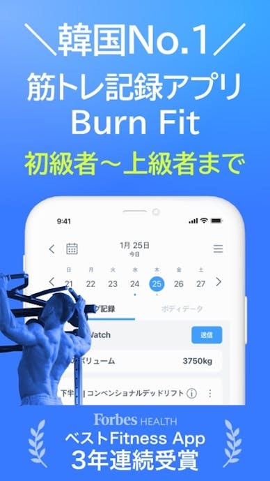 インターバルタイマーアプリ1. Burn.Fit:筋トレ記録とインターバル管理をまとめて一元化!効率重視のトレーニーに最適な記録連携型アプリ