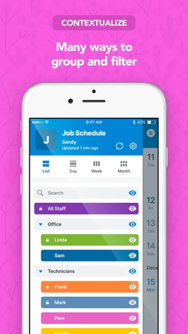 人や設備ごとにカレンダーを色分けできるのが便利! 複数予定を一画面で管理しやすいスケジュールアプリ |