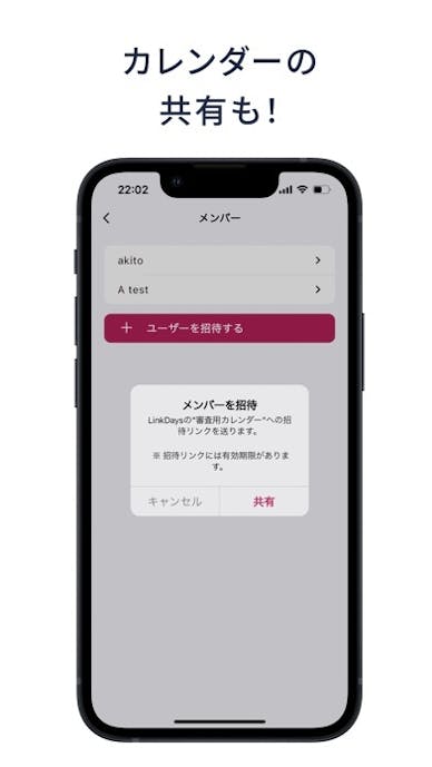 招待リンクやメールでメンバーを追加でき、iPhoneやGoogleカレンダーの読み込みにも対応。ITに詳しくない人でもスムーズに参加できます。