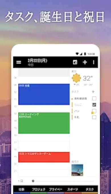Apple WatchやAndroidのウィジェットに対応しており、予定の確認もスムーズ。月・週・リスト表示を切り替えられるため、予定が詰まった日でも見落としを防げます。