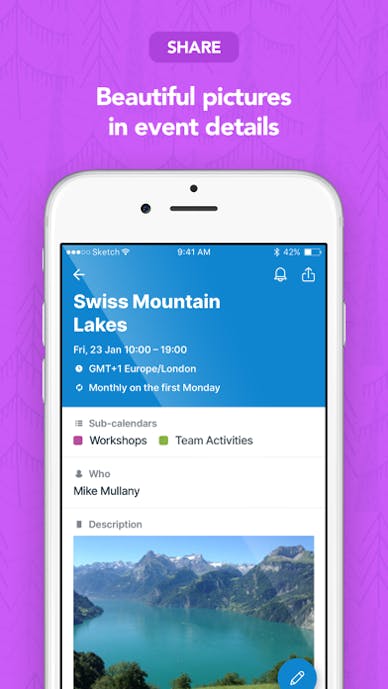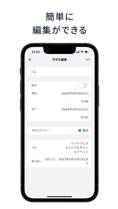 iOSカレンダーやウェブ版と双方向で同期され、いつでもどこでも最新のスケジュールを持ち歩ける設計。