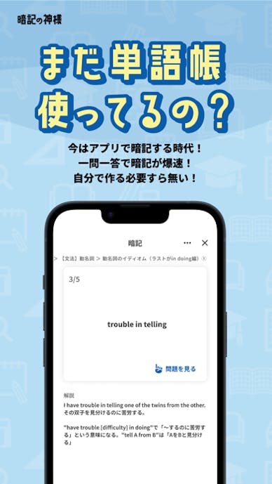 各種ストアで公開されている暗記アプリは、無料から課金タイプまで様々。あまりの種類の多さに目移りする方も多いはずです。